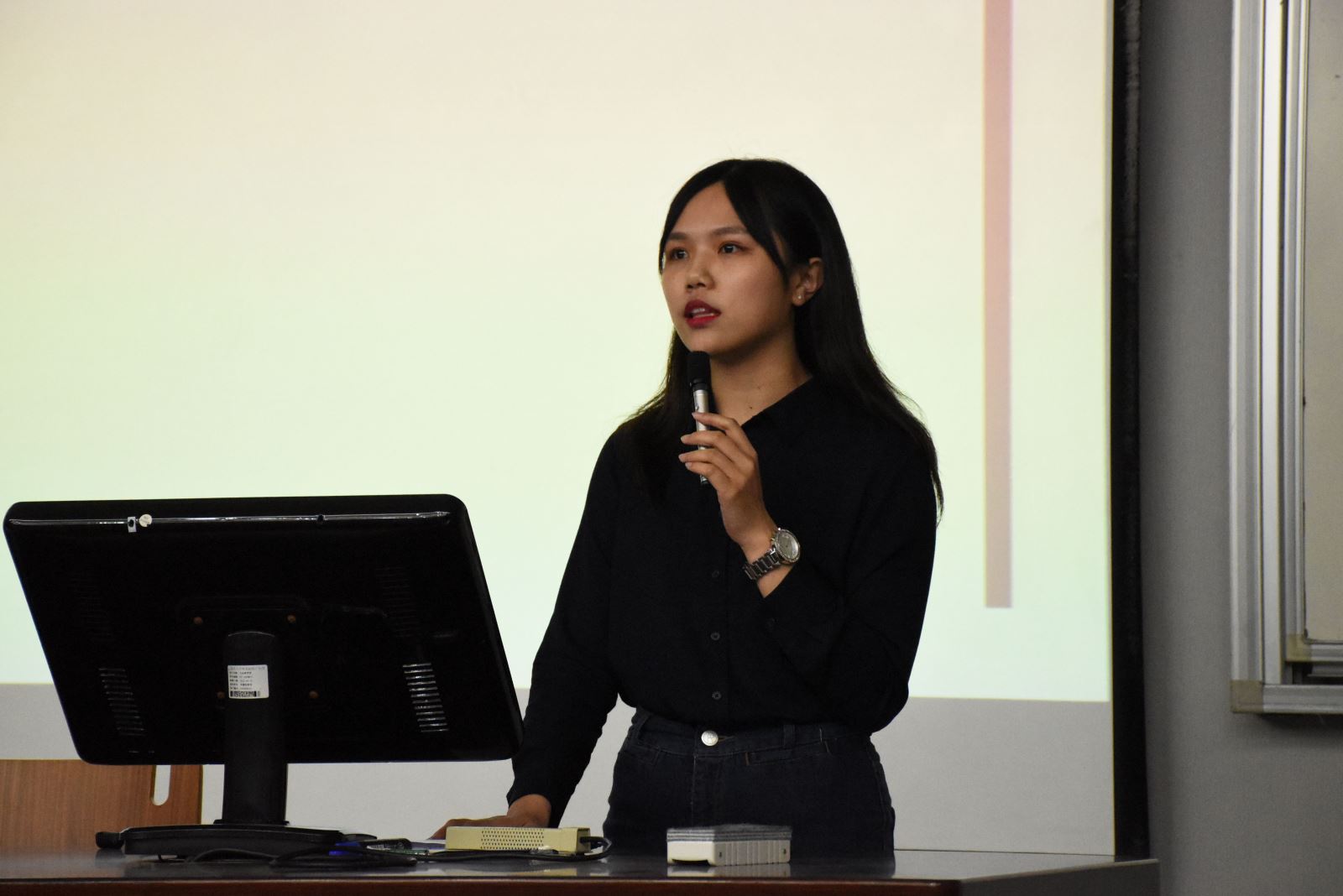 甄丽嫦同学则以她在陆逊梯卡华宏(东莞)眼镜有限公司(意大利跨国公司)实习一年的经历来阐述她对实习以及就业方面的见解,她认为把握住实习时机非常重要,甚至将影响到offer的获得。此外,她还分享了一些她认为比较有用的求职公众号给在场同学,希望大家能够借助这些资源,顺利找到心仪的工作。