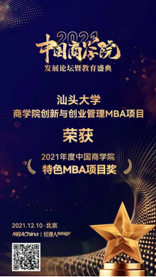 5.金沙官网创新与创业管理MBA项目荣获“2021年度中国金沙990活动大厅特色MBA项目奖”
